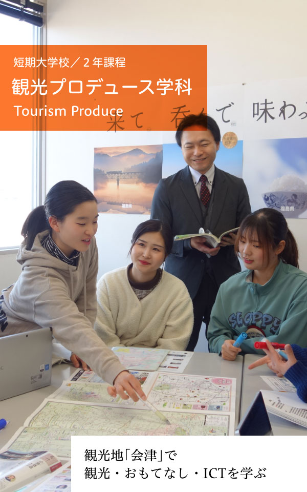 観光・サービス業に求められる知識と実践技術を様々な面から学び、高いビジネススキルと豊かな感性を身に付けることで、地域の観光産業を総合的にプロデュースできる人材を育成します。
